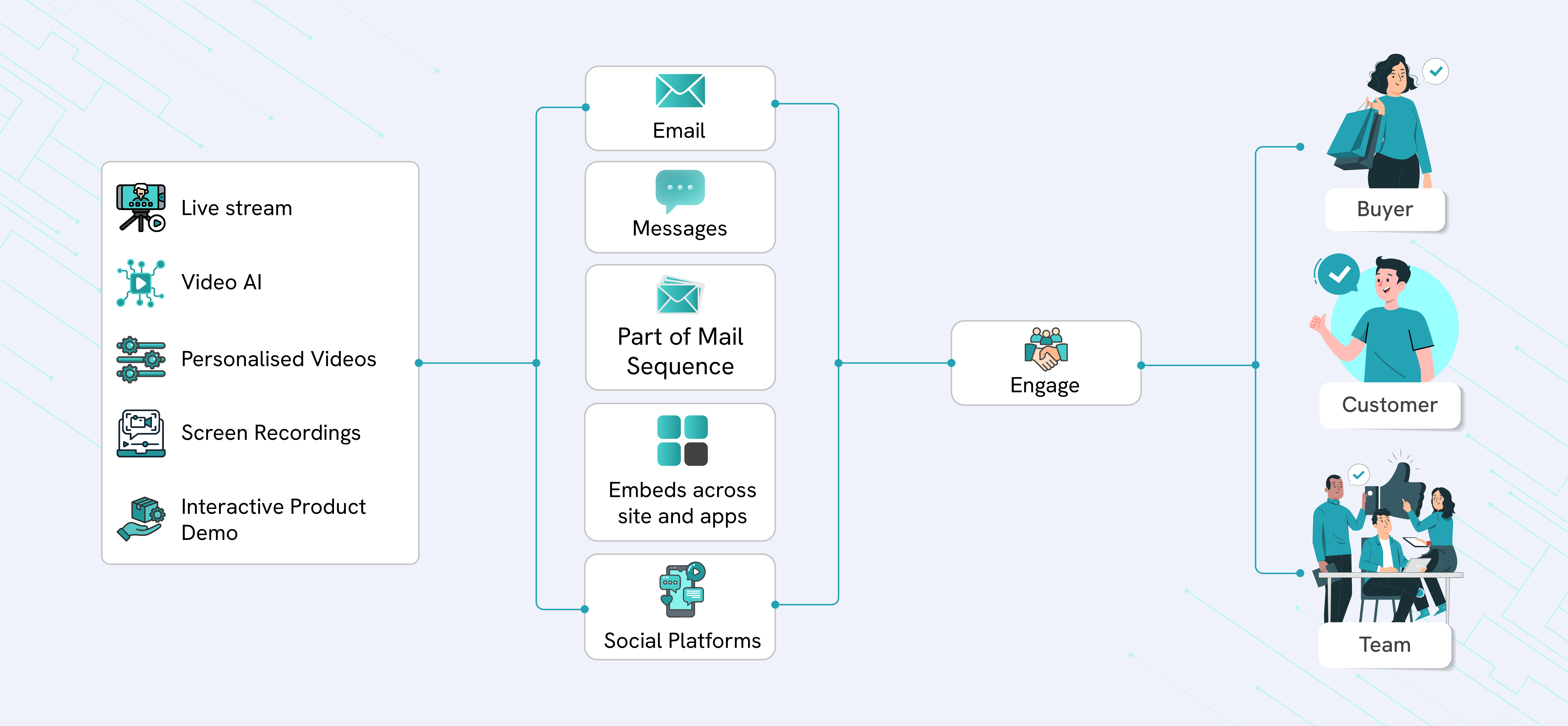 Step into the future of engagement with Live Streams, Screen Recordings, AI-Driven Video Creation, Personalized Videos, and Interactive Product Demos—all in one powerful platform.